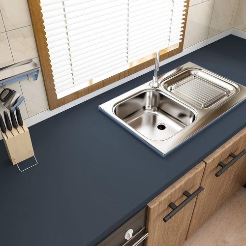 CHICHOME 壁紙シール 無地 リメイクシート ダークブルー カッティングシート 45cm×6m 厚みある壁紙 はがせる 自己接着 ウォールステッカー クロス ふすま紙 キッチン のり付き 模様換え おしゃれ DIY インテリア 家具 リフォーム 補修 防水 バブルなし リビング 部屋 賃貸 テーブル ドア キャビネット 棚
