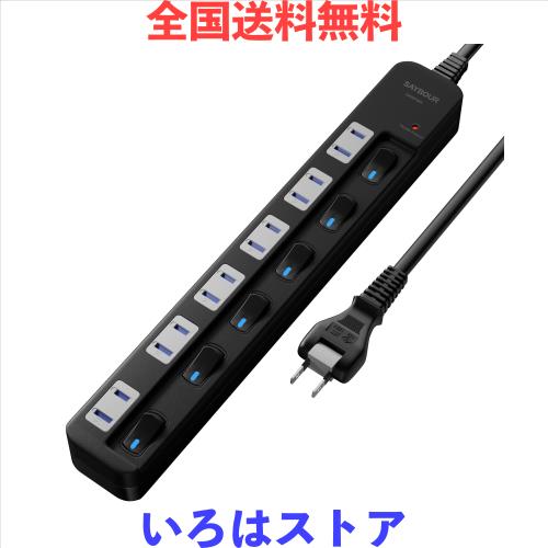 ◆商品名:SAYBOUR 電源タップ 雷ガード 個別スイッチ 節電タップ おしゃれ省エネ ACコンセント 6個口LED PSE認証済 延長コード (1m, ブラック)