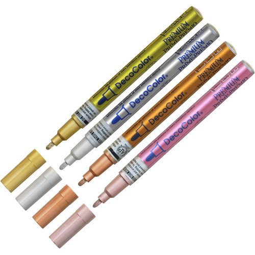 マービー 油性顔料マーカー デコカラープレミアム 4色セット 細字 240-4N