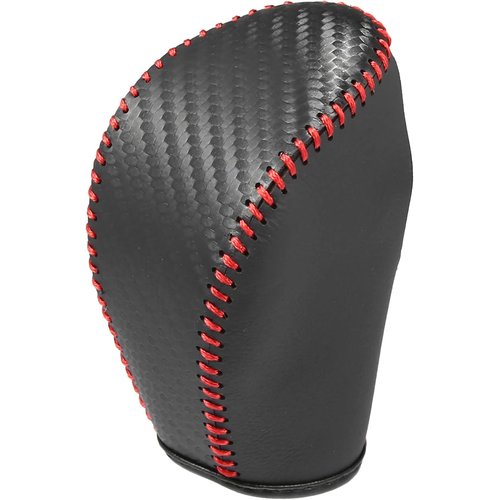 A ABSOPRO シフトノブカバー ギア シフトレバ イクレザー カーボンファイバーパターン ブラック レッド