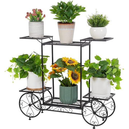 【大容量の大型植物棚】6つのトレイがあり、6鉢以上の鉢植えを置ける園芸棚で、空間を有効活用できます。さまざまな種類の花や植物を自分のセンスで上手く飾ってみたい方に適しています