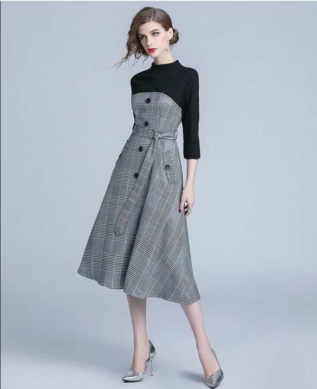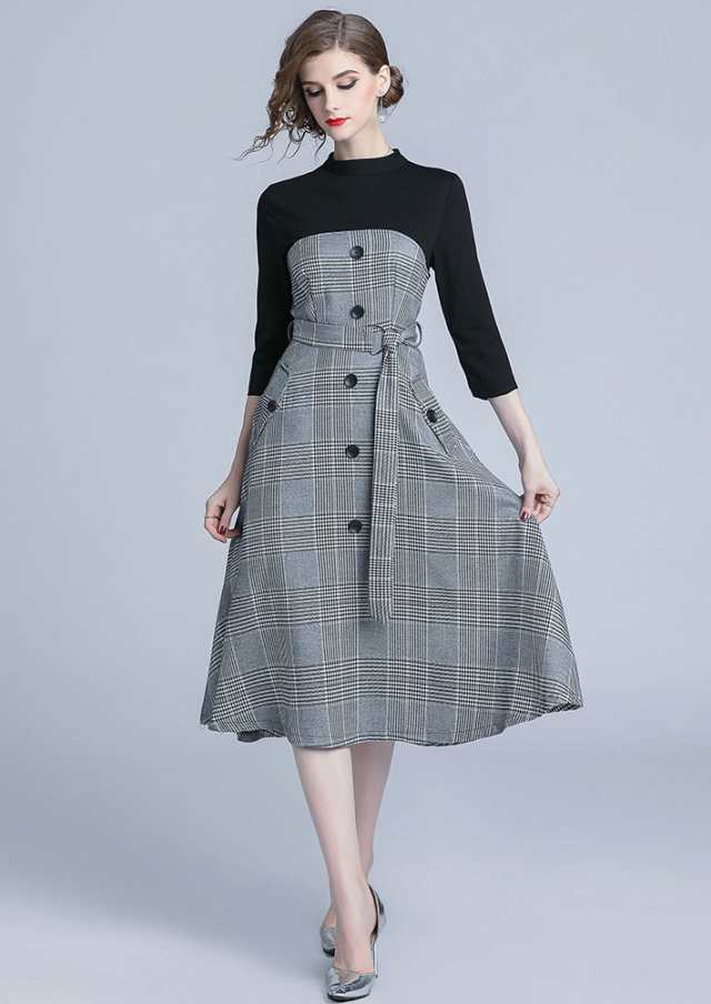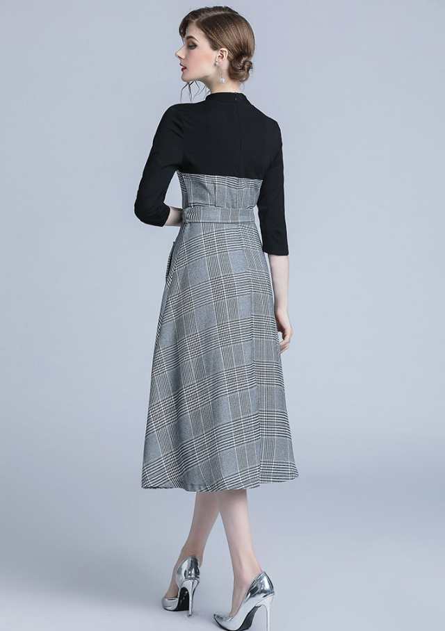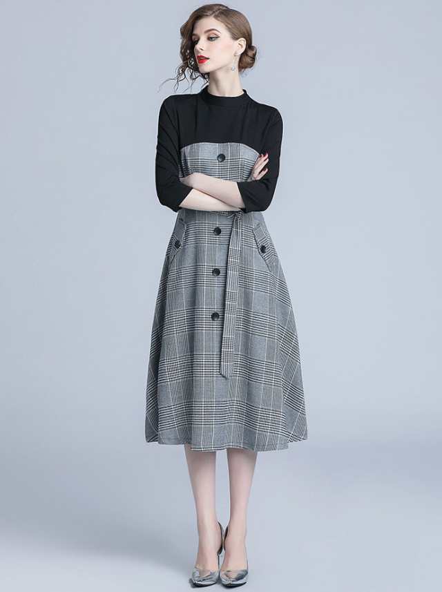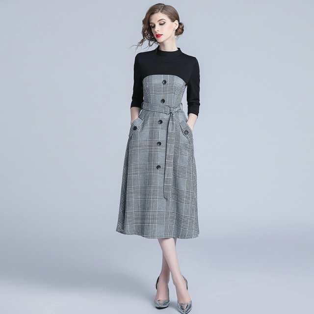 ワンピース レディース 秋物 マキシ丈ワンピース きれいめ ロングワンピース チェック柄 長袖 30代 40代 50代 春 おしゃれ 秋 冬 上品