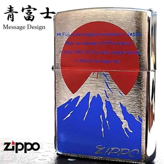 ZIPPO ライター 青富士 ジッポ 珍しい シルバー 富士山 ジッポロゴ 和柄 綺麗 おしゃれ 日本 和風 めでたい 美しい かっこいい メンズ ギフト プレゼント