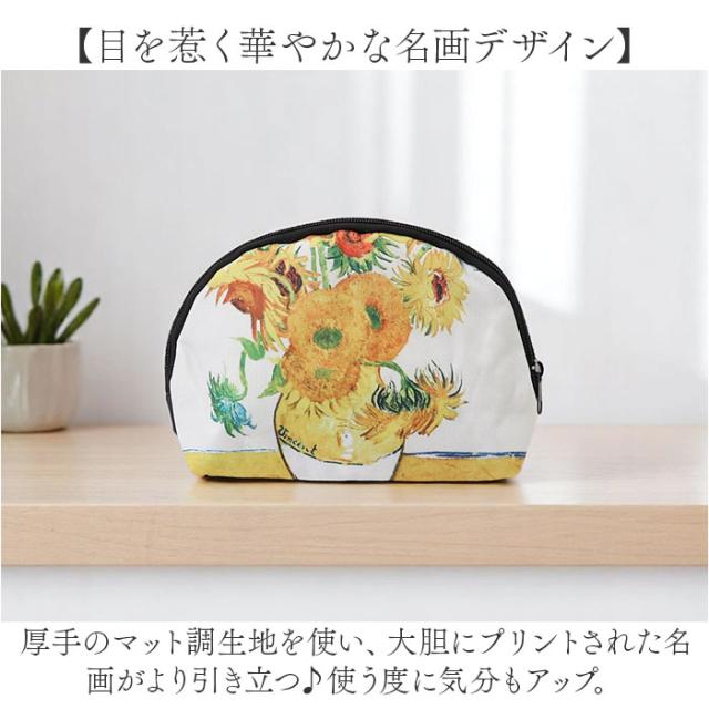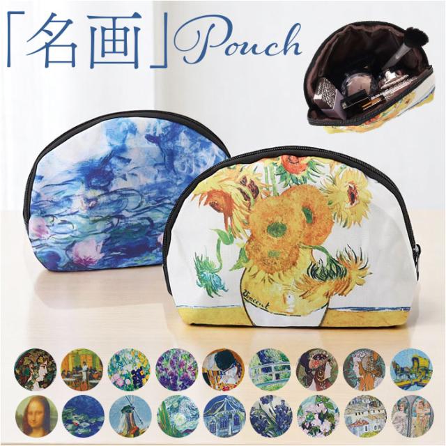 ポーチ おしゃれ 通販 名画ポーチ 化粧ポーチ 小物入れ マルチポーチ ラウンドポーチ コスメポーチ 収納 かわいい レディース コスメ 衛生用品 マチ付き 絵画ポーチ モダン 持ち歩き 母の日贈り物 ギフト