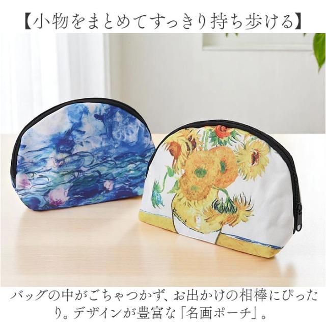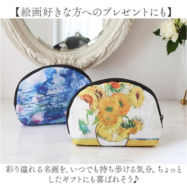 ポーチ おしゃれ 通販 名画ポーチ 化粧ポーチ 小物入れ マルチポーチ ラウンドポーチ コスメポーチ 収納 かわいい レディース コスメ 衛生用品 マチ付き 絵画ポーチ モダン 持ち歩き