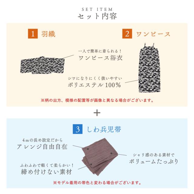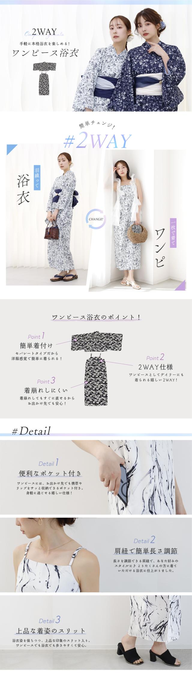 ワンピースタイプ浴衣2点セット 1人で着られる簡単着付け♪