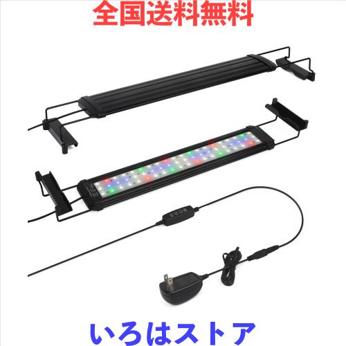 【商品仕様】 ライトの種類:LED LED個数:60個 設置方法:水槽上置き型タイプ 適合水槽:幅45-60cm 定格電圧/周波数:AC100-240V、50/60 Hz 使用アダプター出力:DC 12V 消費電力:11W 製品サイズ(本体部のみ):約40.6*8*1.96cm 電源コードの長さ:約2メートル
