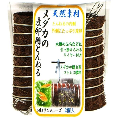 メダカの隠れ家と産卵巣を一体化しました。とんねる内にメダカが隠れたり、植物繊維の内側、外側に卵をたっぷり産み付けます。●全体をステンレスの輪で固定しているので型崩れしにくい。●付属のワイヤーで水槽、睡蓮鉢などにつるして使用することもできます。●2個入り
