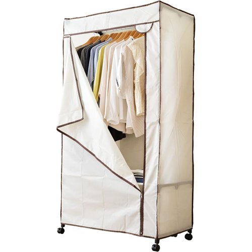 ドウシシャ ハンガーラック カバー付き ワードローブ 大容量 頑丈 全体耐荷重16kg キャスター付き 棚 収納付き 白 アイボリー 幅90×奥行50×高さ170cm 洋服収納 パイプハンガー 洋服掛け 衣類 衣装 クローゼット HRC-9050