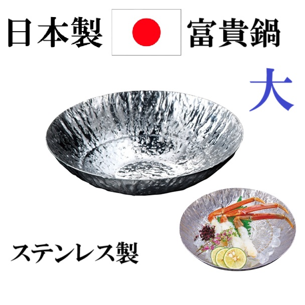 日本製 富貴鍋 ステンレス製 大 一人鍋 魚貝 盛り付け しゃぶしゃぶ鍋 ちり鍋 うどんすき鍋 卓上鍋 寄せ鍋 卓上 鍋 うどん うどんすき 飲食店 和食 旅館 業務用旅館 居酒屋 魚貝