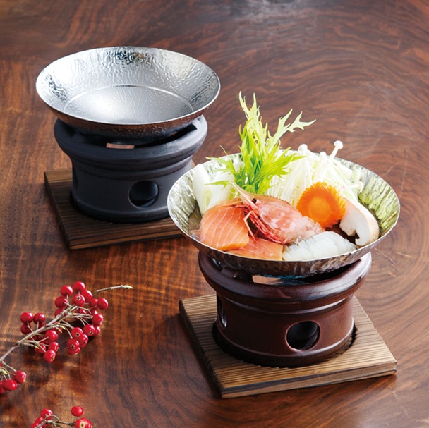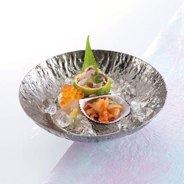 鍋用の器ですが、氷などで演出することで涼しげな盛器にもなります。