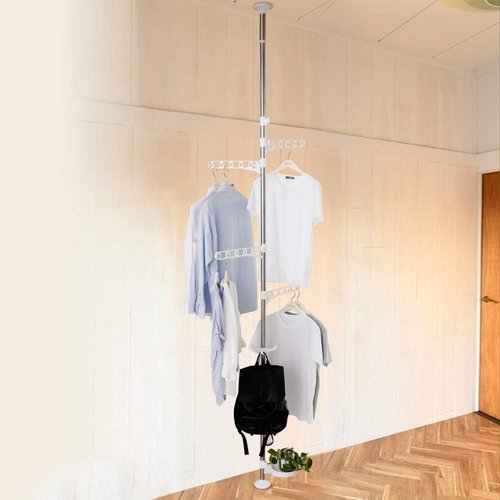 BAOYOUNI 室内物干し つっぱり式 物干しポール ランドリー 突張り式 突っぱり式 物干しスタンド 白