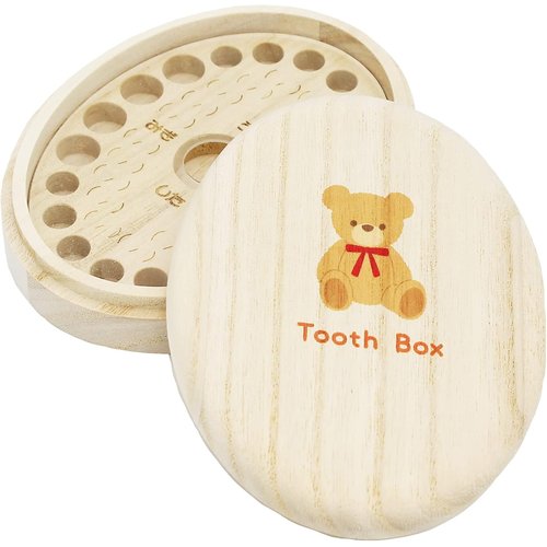 高級桐材を使用した楕円形のかわいい乳歯保存ケース。歯が抜けた年齢と日付が書けます。透明アクリル板付きなので、開けたときに乳歯がこぼれる心配がありません。