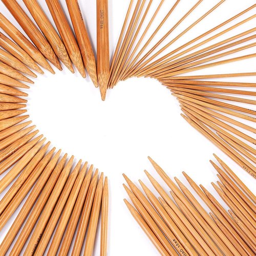 LIHAO 棒針 75本セット 編み針 編み棒 竹製 玉付き 編針 15サイズ 0から15号まで 2〜10mm