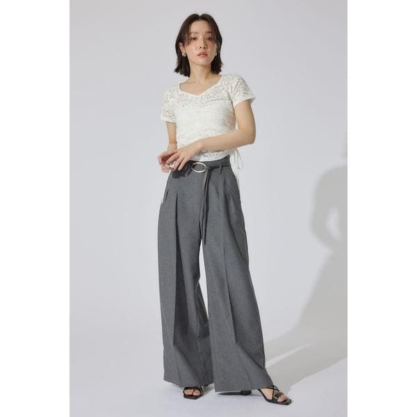 リエンダ(rienda)/リネンライクワイドタックベルト付きパンツ