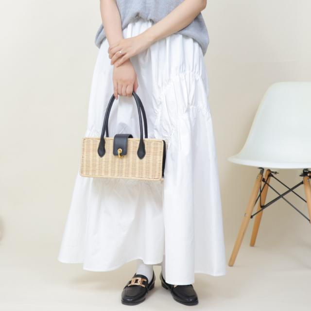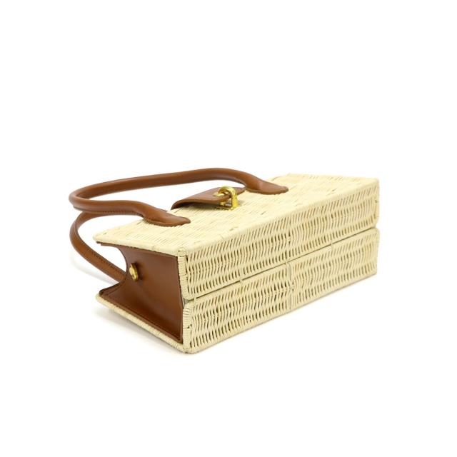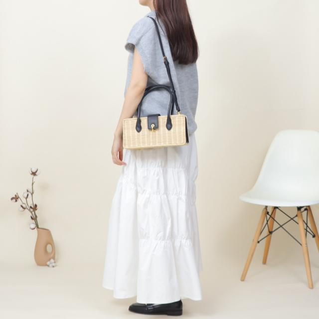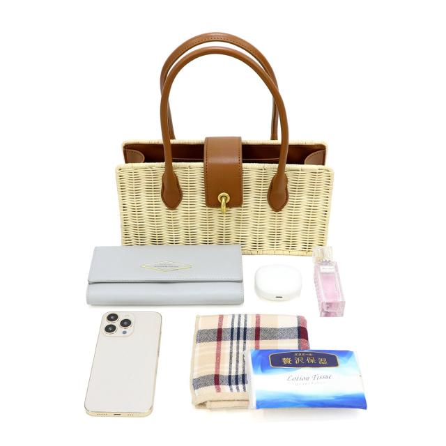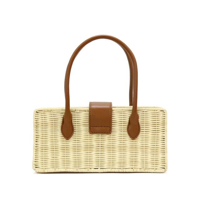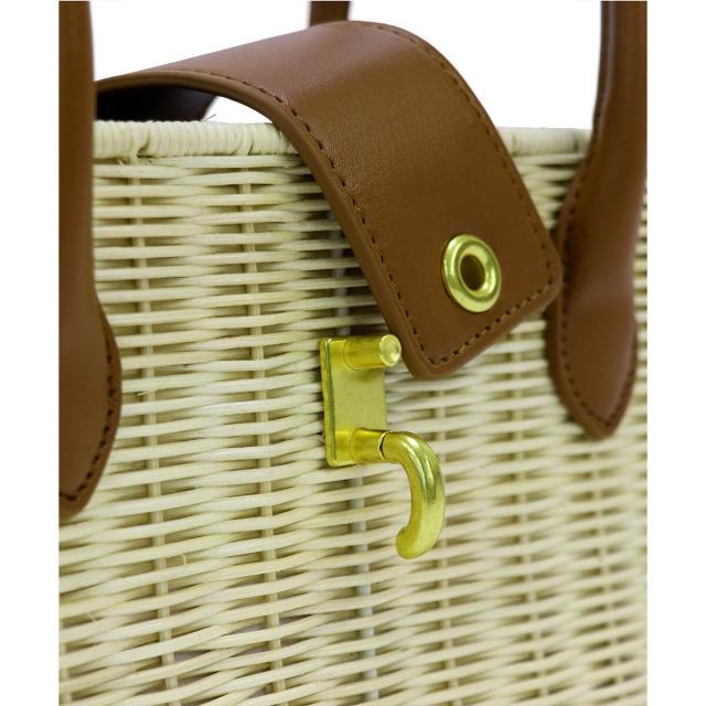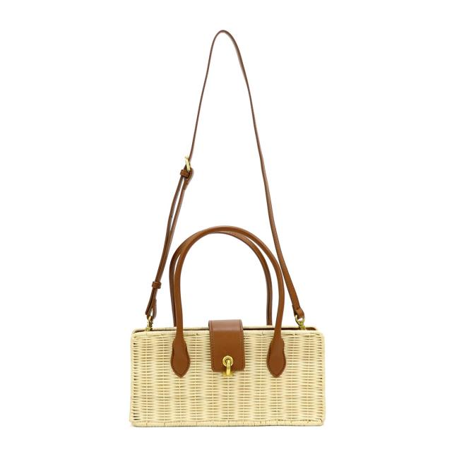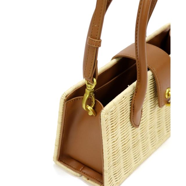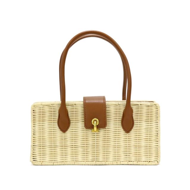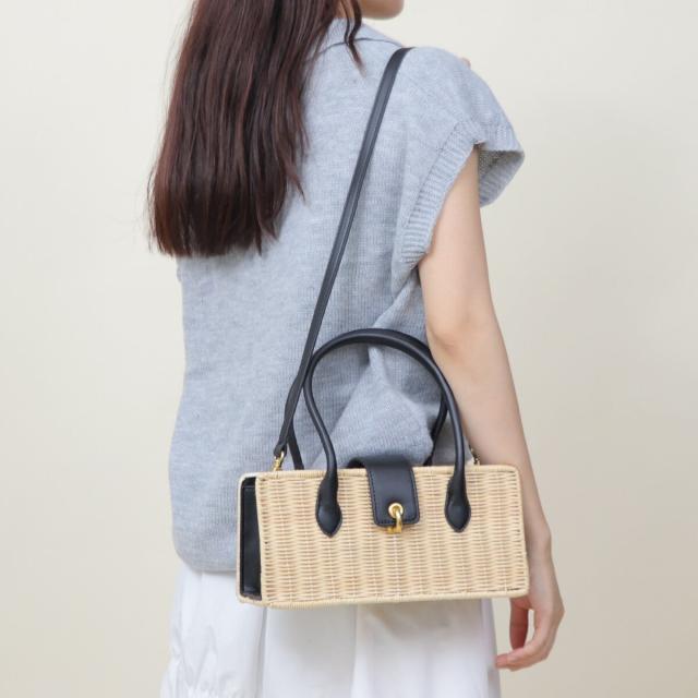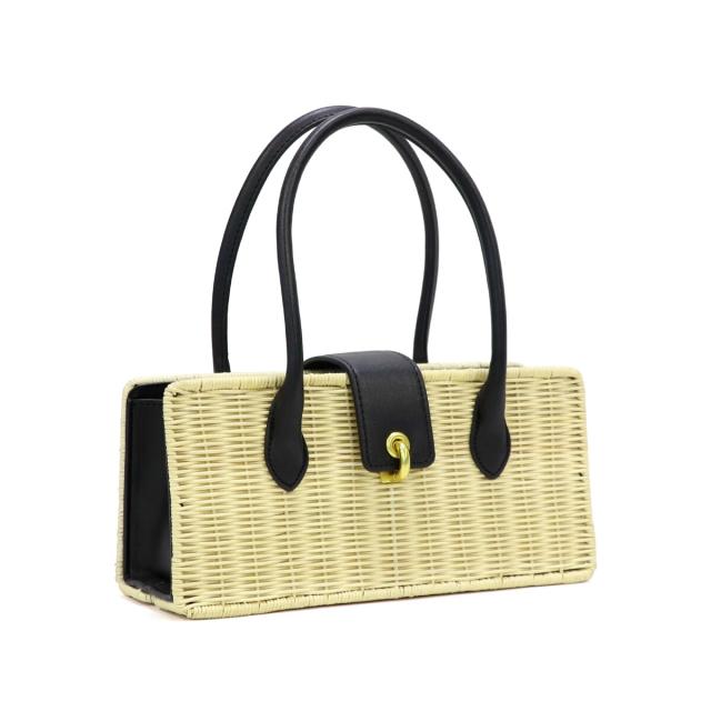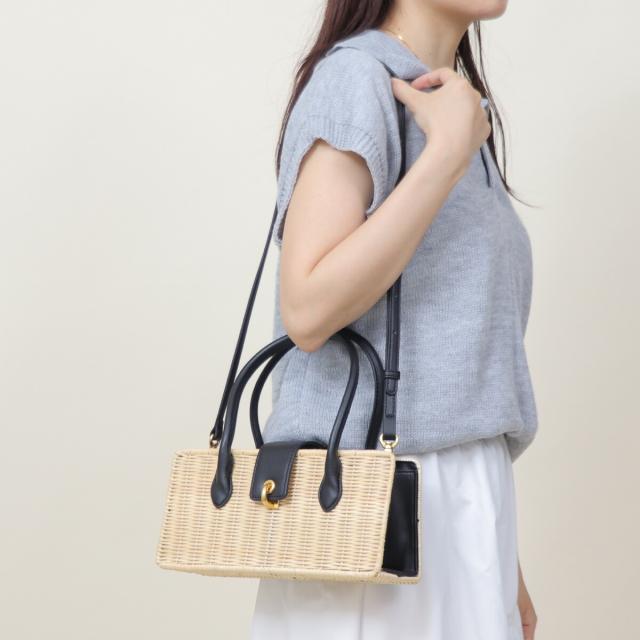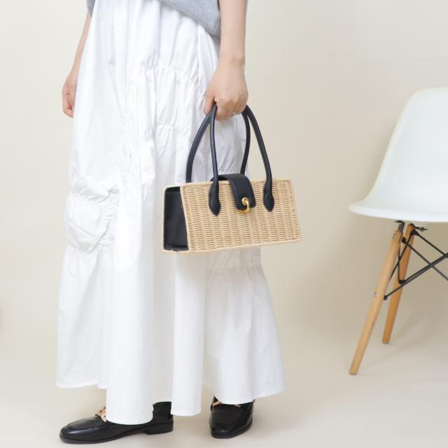 ラタン素材とフェイクレザーを組み合わせたかごバッグ