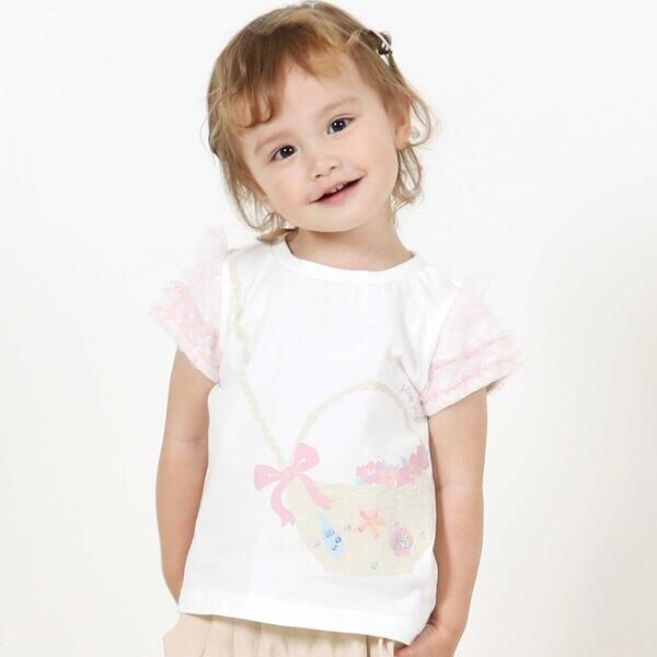 【接触冷感】シェルポシェットプリント袖チュールTシャツ(80~130cm)