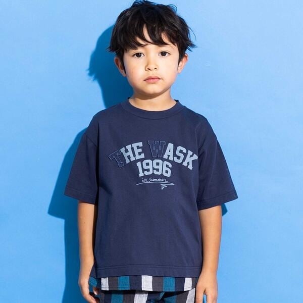 ワスク(WASK)/【接触冷感/速乾】シャツレイヤード風ロゴパッチワークデザインTシャツ(100~160cm)