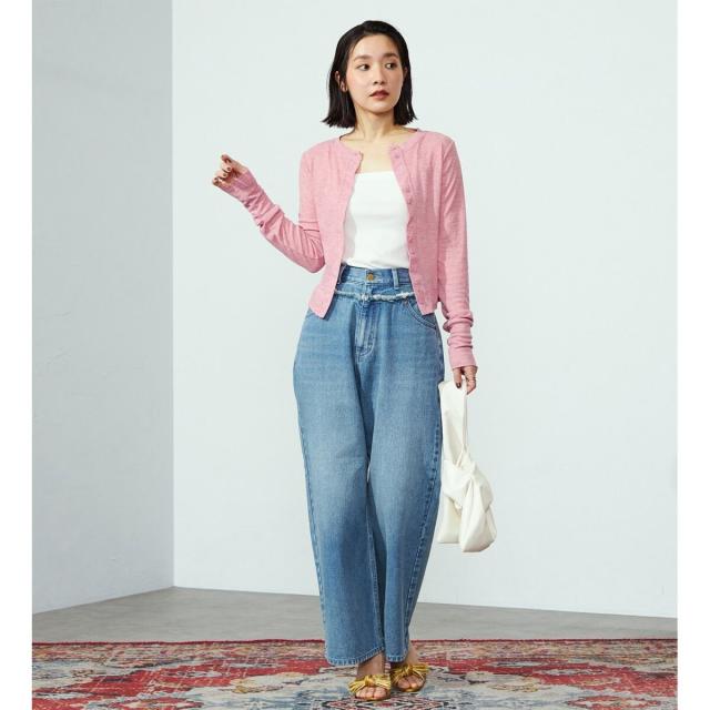 ダブルウエスト ワイドデニムパンツ/オーガニック混コットン