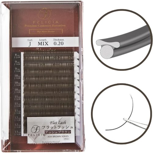 FELICIA アッシュブラウン フラットラッシュ 極柔らかまつ毛エクステ シングル マツエク アイラッシュ Jカール0.20太さ8-13mm ミックス