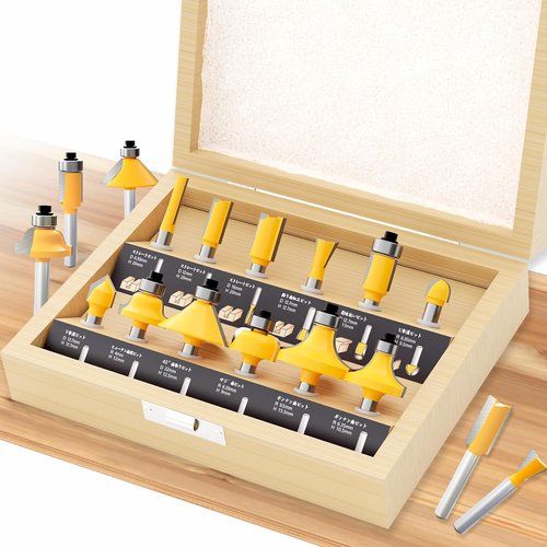 CSOOM 12本組 プロ木工トリマービットセット 超 6mm木工工具のルータビットセット 木製収納ボックス付き