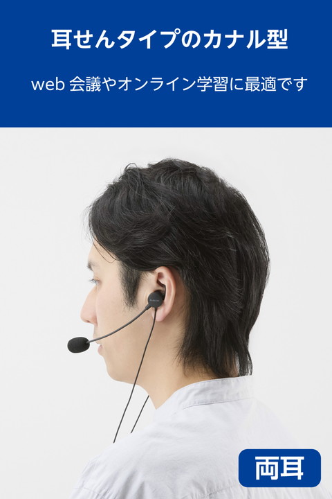 Web会議やビデオ通話、オンラインゲームでの音声チャットに最適!USB-Aプラグを搭載した両耳カナル型の有線ヘッドセットです。通話に最適なマイクアームとφ10mmドライバーを採用した高音質モデルです。![]() ■Web会議やビデオ通話、オンライン学習やオンラインゲームでのボイスチャットに最適な、マイクアーム搭載の両耳耳せんタイプのカナル型有線ヘッドセットです。 ■USB-Aコネクター接続なので、パソコンのヘッドホン端子を使わずにヘッドセットを使用可能です。 ■ケーブルのプラグを挿せば使える簡単接続で、設定や充電などの手間がなく、すぐに通話に参加できます。 ■しっかりと音声を聞き取れる両耳タイプのヘッドセットです。 ■遮音性が高く耳にフィットする耳せんタイプのカナル型で、音漏れを低減すると同時に周囲の雑音に影響されずに通話可能です。 ■髪型の乱れを気にせずに装着できる耳せんタイプのカナル型です。 ■φ10mmのダイナミック型ドライバーを採用した高音質モデルです。 ■イヤーキャップはS・M・Lサイズの3サイズを付属し、フィット感を調整できます。 ■※最初はMサイズの3Dフィットイヤーアーム、イヤーキャップが取り付けられています。 ■耳に3次元的にフィットし、通話時の抜け落ちを防止する3Dフィットイヤーアームを採用しています。長時間の使用でも快適な装着感を実現しました。 ■マイクは自由に曲げて固定できるフレキシブルアームで、最適な位置に調整可能です。 ■息によるポップノイズを軽減するウインドスクリーンを付属品として同梱しています。 ■ボリュームの調整・マイクのオン/オフが手元で操作できる便利なコントローラーを採用しています。 ■ゆったり接続できるケーブル長約1.8mです。 ■自社環境認定基準を1つ以上満たし、『THINK ECOLOGY』マークを表示した製品です。 ■廃棄物削減に取り組み、製品に同梱する取扱説明書等をペーパーレス化した製品です。 ■環境保全に取り組み、製品の包装容器におけるプラスチック重量を、社内基準製品より20%以上削減した製品です。 ■環境保全に取り組み、製品の包装容器が紙・ダンボール・ポリ袋のみで構成されている製品です。 ![]() ■対応機種:USB-Aポートを装備したパソコン・タブレット・スマートフォン(Windows搭載機種、 Chromebook 、MacBookなど) ※すべての機器での動作を保証するものではありません。 ■インターフェース:USB-Aプラグ ■ケーブル長:約1.8m ■カラー:ブラック ■重量:約8g(ケーブル含まず) ■外形寸法:幅約20mm×奥行約26.5mm×高さ約157mm(左耳用、最外径)(ケーブル含まず) ■装着方式:両耳カナル型イヤホンタイプ ■ヘッドホン・スピーカー方式:ダイナミック型(ステレオ) ■ヘッドホン・ドライバーユニット:φ10mm ■ヘッドホン・インピーダンス:32Ω ■ヘッドホン・周波数帯域:20Hz〜20,000Hz ■ヘッドホン・ボリューム調整:あり ■マイク・マイク方式:エレクトレットコンデンサー方式 ■マイクアーム長さ:約125mm ■マイク・ミュート機能:あり ■マイク・指向性:全指向性 ■マイク・入力感度:-38dB±3dB ■マイク・インピーダンス:2.2kΩ ■マイク・周波数帯域:100Hz〜10,000Hz ■付属品:イヤーキャップ(S/M/L:各2個 ※Mは本体装着済)、3Dフィットイヤーアーム(S/M/L:各2個 ※Mは本体装着済)、ウインドスクリーン ■保証期間:1年間 |