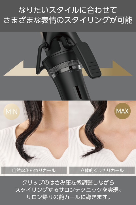 サロンテクニックとシルクのなめらかさで、くっきり艶カールもゆるふわカールも美しく再現する、プロ仕様のカールアイロンです。シルクコーティング(TM)プレートが水分の蒸発を抑えて潤いを守り、ヘアカラーの退色を軽減。はさみ圧の調整機能も搭載し、毎日のスタイリングをサロン級の仕上がりに導きます。