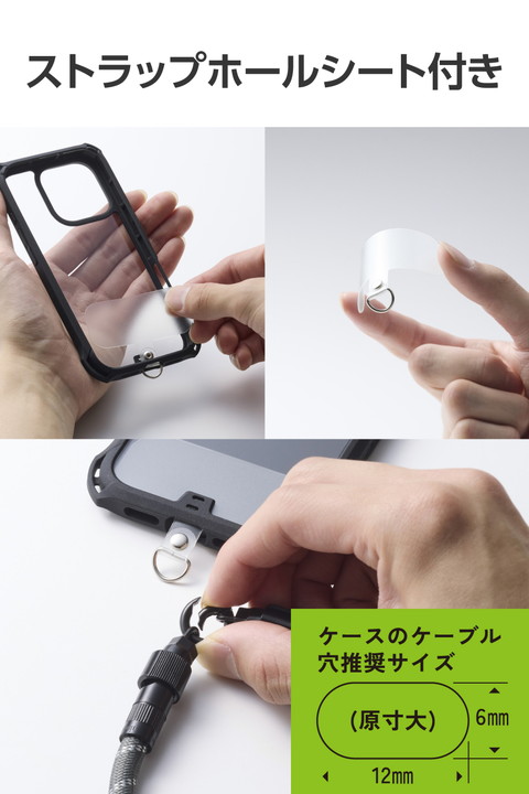 エレコム スマホ ハンド ストラップ 充電ケーブル ストラップホールシート付属(1口タイプ×1枚) ケーブルショルダー ブラックストライプ ┃P-STHH1CC08BK2