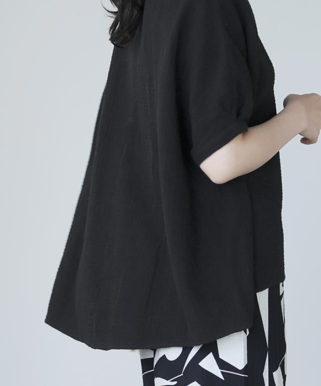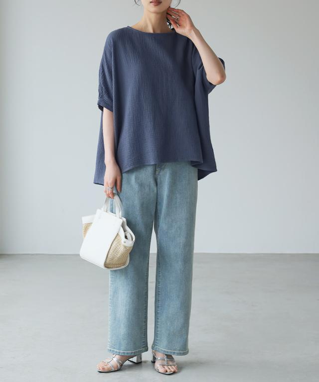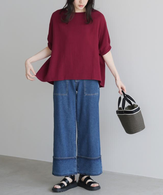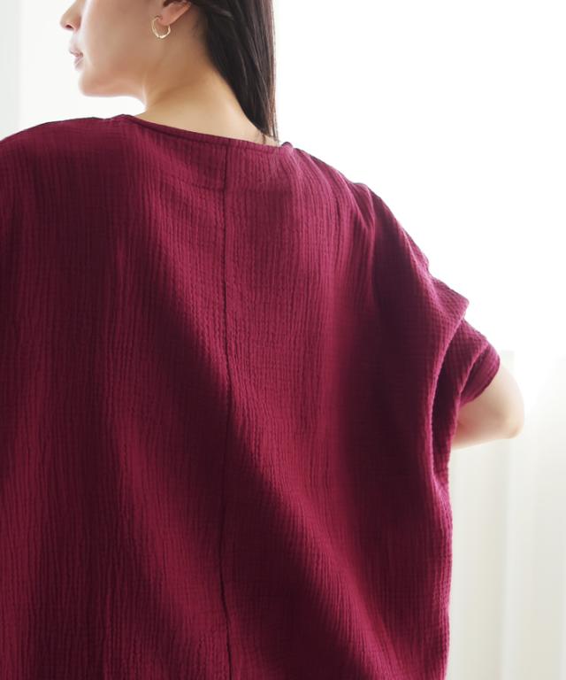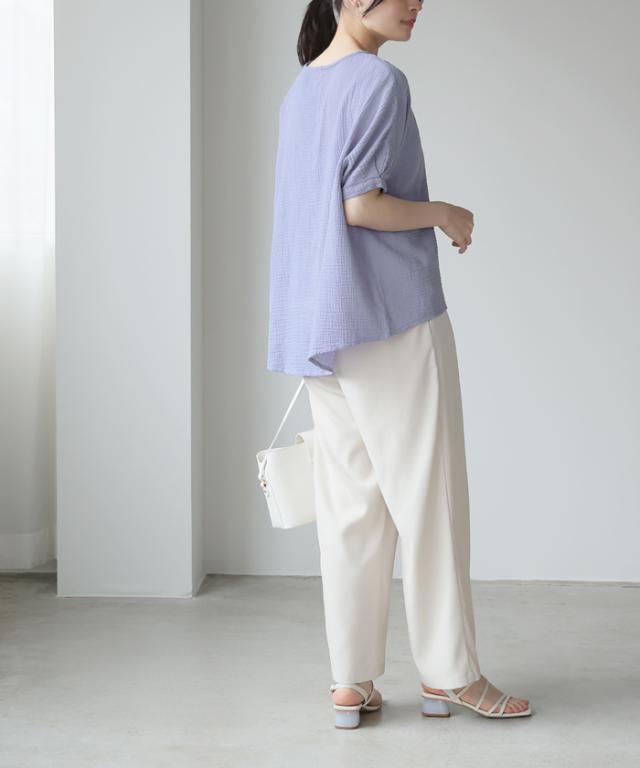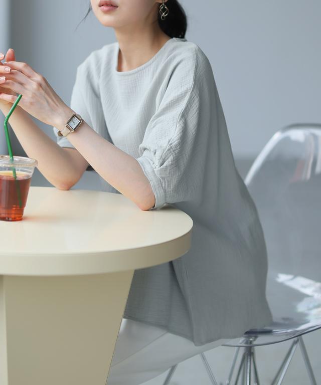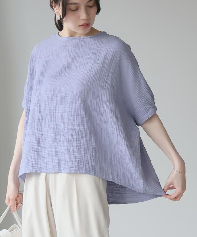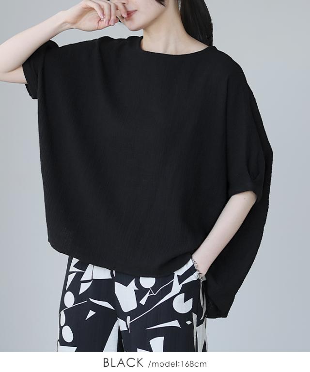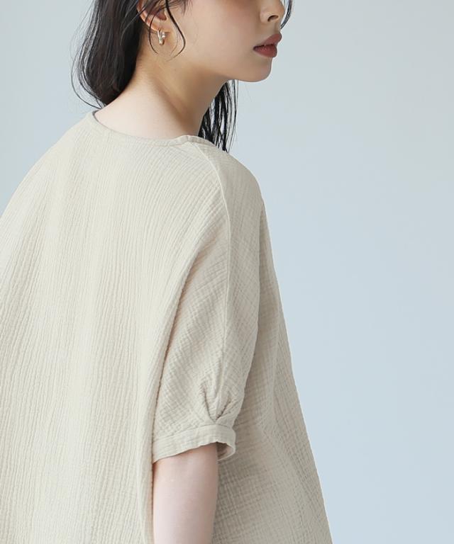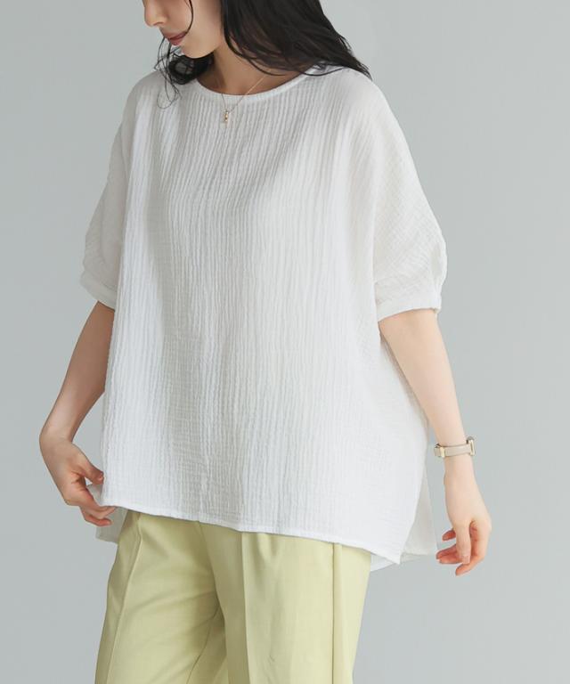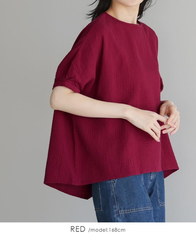 ダブルガーゼ ワイドトップス ブラウス 綿100% ダブルガーゼ Mサイズ レディース 春夏 秋 五分袖 ミドルスリーブ 大きめ ゆったり 無地 ナチュラル 体型カバー【メール便1点まで】[M便 1/1]