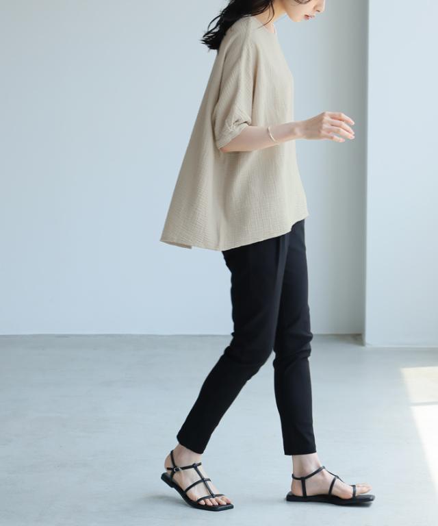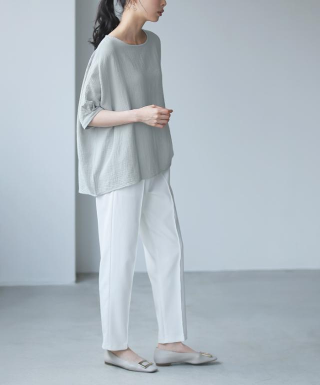![]() ![]() ![]() ![]() ![]() ![]() ![]() ![]() ![]() ![]() ![]() ![]() ![]() ![]() ![]() ![]() ![]() ![]() ![]() ![]() ![]() ![]() ![]() ![]() ![]() ![]() ![]() ![]() ■Comment 『長く着たいから、肌触りのいいものを選びたい。』 肌に優しい綿100%のダブルガーゼを使ったトップス。 生地をたっぷり使ったワイドシルエットで、ストレスフリーな着心地。 袖口はタックを入れ、少し丸みのある甘いデザイン。 清涼感のある、普段使いにちょうどいいアイテムです。 ■Size(cm) 【M】:着丈61/68 バスト144 裄丈49 袖口28 天幅21 裾周り144 ■Fabric 綿100% 生地感:ふわっとした柔らかな手触りで、シワ感のあるダブルガーゼ生地 裏地:なし 伸縮性:なし 透け感:若干あり 生地の厚さ:普通 ■Weight 約150g ■Color オフホワイト(少し黄みがかった白) ブラック(標準的な黒) ライトベージュ(くすんだベージュ) ライトグレー(青みの強い、薄いブルーグレー) ブルー(少し緑がかった、くすんだネイビーブルー) レッド(少し紫がかった、暗めの赤) スモーキーブルー(少し紫がかった、くすんだブルー) ■Country of origin 中国 ■洗濯表示 ![]() ■Attention ※ご覧になるモニターや環境により実際の商品と色味が異なる場合がございます。予めご了承ください。 ※実寸サイズは平置きメジャー採寸のため若干の誤差が生じる場合がございます。 ※お取り扱い・お洗濯につきましては、付属の商品タグをご使用前に必ずご確認下さい。 ※濃色の商品は色落ち・移染する可能性がございますので、お取り扱いにはご注意下さい。 ※繊維製品のため、同じ商品であっても生産時期やカラーによって伸縮率・生地感・色味が多少異なる場合がございます。特にニット製品に関してはプレス・洗い加工等で5cm前後の誤差が生じる場合がございます。 これらは品質上問題はございません。予めご了承下さい。 ■Staff comment AI/身長:154cm(普段のサイズ:M-L) 体型:骨格ストレート 全体的に厚みのある、産後体型。 トップスはMサイズを選ぶ。 ウエストと腰回りが大きく、ボトムはLサイズを選ぶこともあります。 【着丈】前はおへそ下17cmで、 後ろはヒップ下6cm。 【袖丈】肘の真ん中ぐらい。 【一言コメント】 ゆったりした着心地ですが、裾に前後差があるのでスッキリ見えます。 AYA/身長:158cm(普段のサイズ:M) 体型:骨格ウェーブ 上半身筋肉質の標準体型。肩幅は広くバストは平均。 ウエストは細くヒップが大きいので、 ヒップに合わせてボトムは選びます。 【着丈】前はおへそ下15cmで、後ろはヒップ下4cm。 【袖丈】肘の真ん中より少し短い。 【一言コメント】 ガーゼ生地なので肌触りが良く、暑い季節も安心して着れそうです。 RISA/身長:165cm(普段のサイズ:L-LL) 体型:骨格ナチュラル 体に厚みがあるやや痩せ型。 バスト・ウエスト・ヒップは標準ですが、 肩幅が広くて腕が長め、ふくらはぎは筋肉質。 身長が高いため普段Lサイズを選びます。 【着丈】前はおへそ下12cmで、後ろはヒップ下。 【袖丈】肘上。 【一言コメント】 身頃はかなりゆったりしていますが、腕をあげた時に少し突っ張る感じがしました。 |