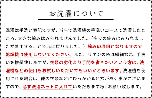 洗濯表記 手洗い(乾燥機不可)