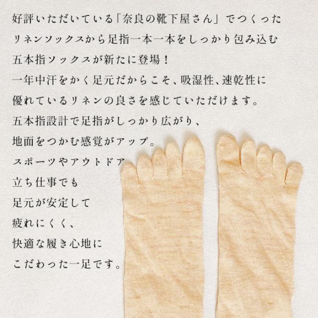 奈良の靴下屋さんの リネン 5本指ソックス 22.0〜25.0cm / 日本製 五本指ソックス レディース 抗菌 消臭 夏用 リネンソックス 靴下 五本指 スポーツ 登山 婦人 麻 天然素材 蒸れない 速乾 ナチュラル くつ下 さらさら 五本指靴下