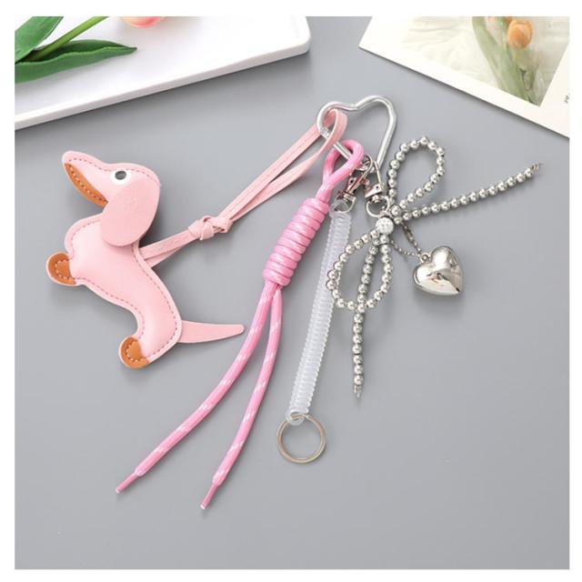 送料無料 キーホルダー ぬいぐるみ 韓国キーホルダー アクセサリー 小物 ファッション雑貨 ポイント バッグチャーム キーリング 鞄飾り ハート 犬 リング かわいい ラブリー ガーリー 学生 カジュアル お出かけ