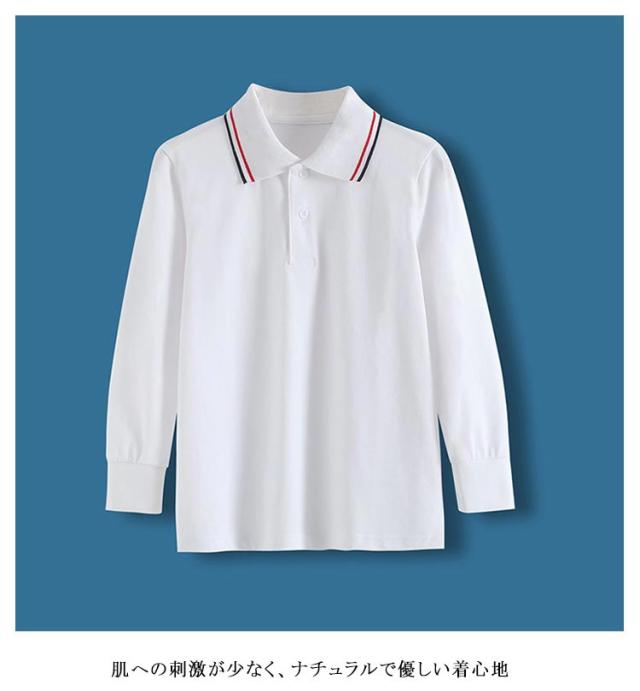 | 制服登校やフォーマルシーンにぴったりのシンプルなポロシャツ 袖口は腕まくりしやすいリブ仕様 肌への刺激が少なく、ナチュラルで優しい着心地 | |