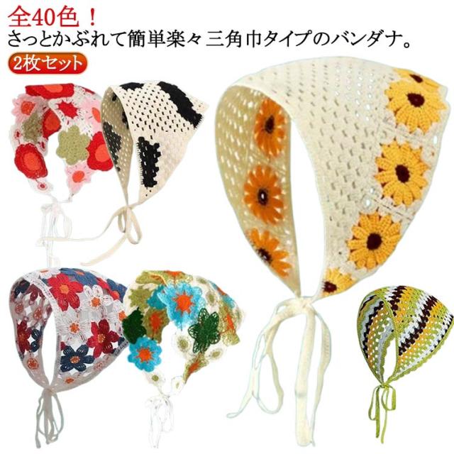 かぎ針編み バブーシュカ 三角巾 送料無料 毛系 可愛い 2枚セット 全40色 バンダナ ヘアアクセサリー ヘアバンド ヘアターバン カチューシャ 春夏 ヘッドドレス ヘッドスカーフ レデイース カジュアル おしゃれ トレンド 旅行 小顔効果