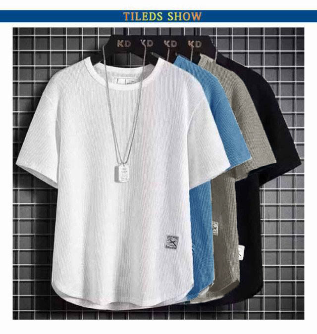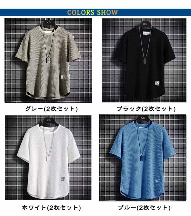 2枚セット 半袖Tシャツ メンズ ワッフル Tシャツ 無地 通気性 半袖 カットソー お洒落 夏服 トップス ティーシャツ カジュアルTシャツ クルーネック 大きいサイズ おしゃれ