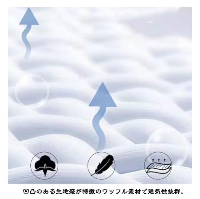 | 首元はクルーネックでカジュアルな印象に仕上がります。 凹凸のある生地感が特徴のワッフル素材で通気性抜群。 涼しい着心地で夏でも快適にオシャレが楽しめます。 | |