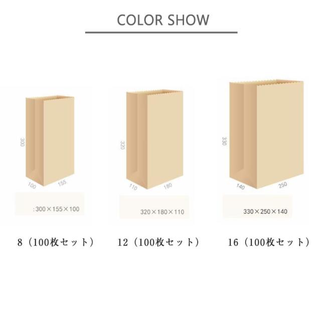 | 定番の無地のシンプルな角底袋 使い捨てクラフト紙袋です。15.5X10X30cm、18X11X32cm、25X14X33cm3個サイズ。 取っ手のない、業務用マチ付き袋です。食料品、ベーカリー、ショッピングバッグとしてもお使いいただけます。 無地デザイン、紙袋にスタンプを押したり、絵を描いたりすることができるだけでなく、シールやステッカーでデコレーションすることもできます。 | |