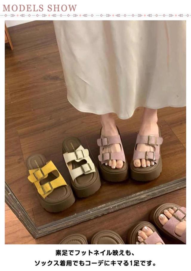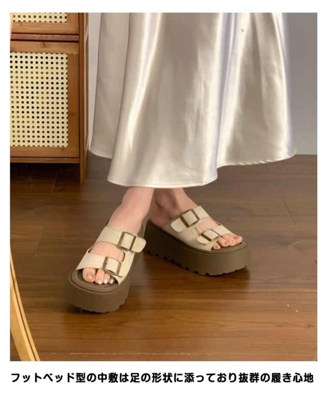 | サッと履けてトレンドも押さえられる厚底サンダル フットベッド型の中敷は足の形状に添っており抜群の履き心地 程よい厚みの厚底ソールは歩きやすく、スラッと美脚効果も◎ また、滑りにくく減りにくい底材で長期間ご愛用頂けます。 カジュアルコーデにはもちろん、ワンピースやナチュラルスタイルと合わせてコーデに抜け感をプラス 素足でフットネイル映えも、ソックス着用でもコーデにキマる1足です。 | |