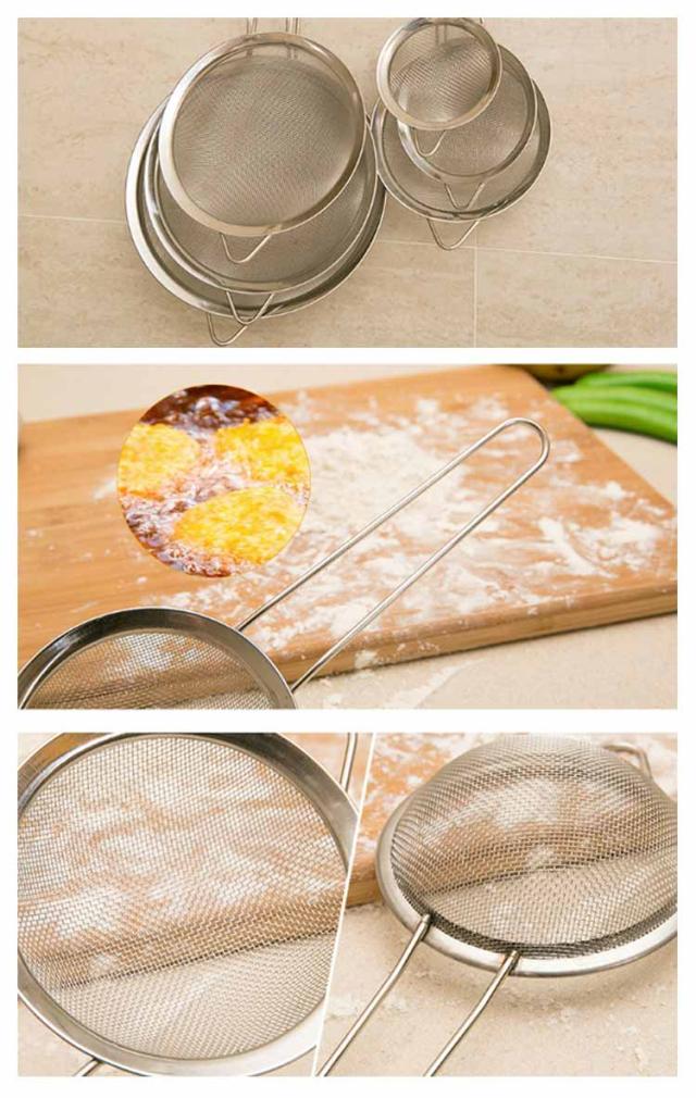 | ステンレス製ストレーナー 取っ手付き 、壁に掛けられることができ、収納便利。 違いサイズと 2 つのタイプをご用意。 用途: ジュース、ツバメの巣などの食品の濾過に適しています。 海藻、エビを洗い、中の砂を濾します。 豆乳を濾します。(豆乳を濾す際は、スプーンにガーゼを敷くと濾過効果が高まります) 油カス、薬カスを濾します。 ピーナッツ、メロンの種、唐辛子、胡椒などを揚げて塩を混ぜ、中の塩を濾します。 冬に野菜をすくい、手に水がかからないようにすることで、皮膚の乾燥、ひび割れ、凍傷の発生を予防することができます。 ワンタンすくい。 ゴマを洗い、中の細かい砂やほこりを濾します。 | |