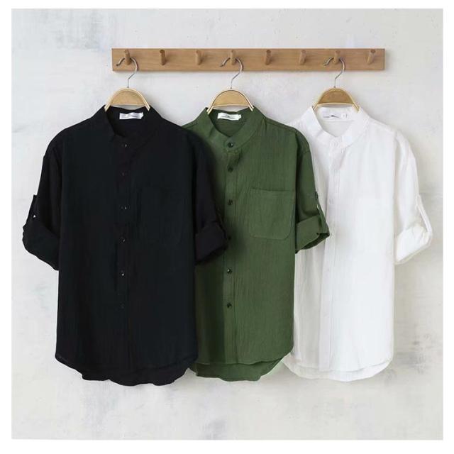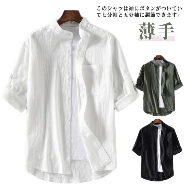 ビジネス 柔らかい メンズ シャツ 無地 トップス カジュアルシャツ 半袖シャツ 無地 シャツ 夏服 綿麻 シャツ 薄手 おしゃれ 大きいサイズ 通勤