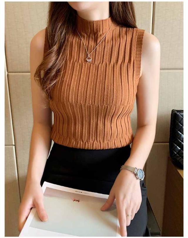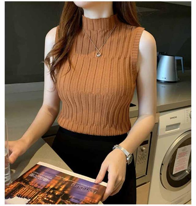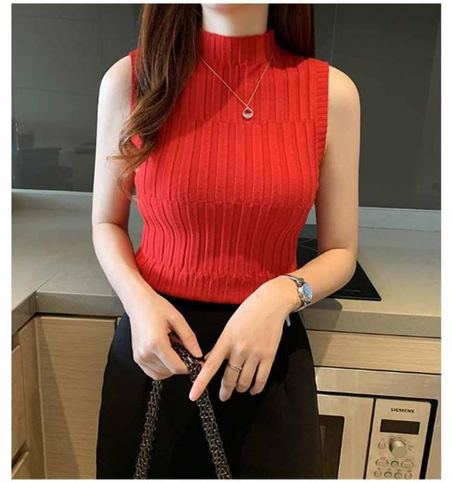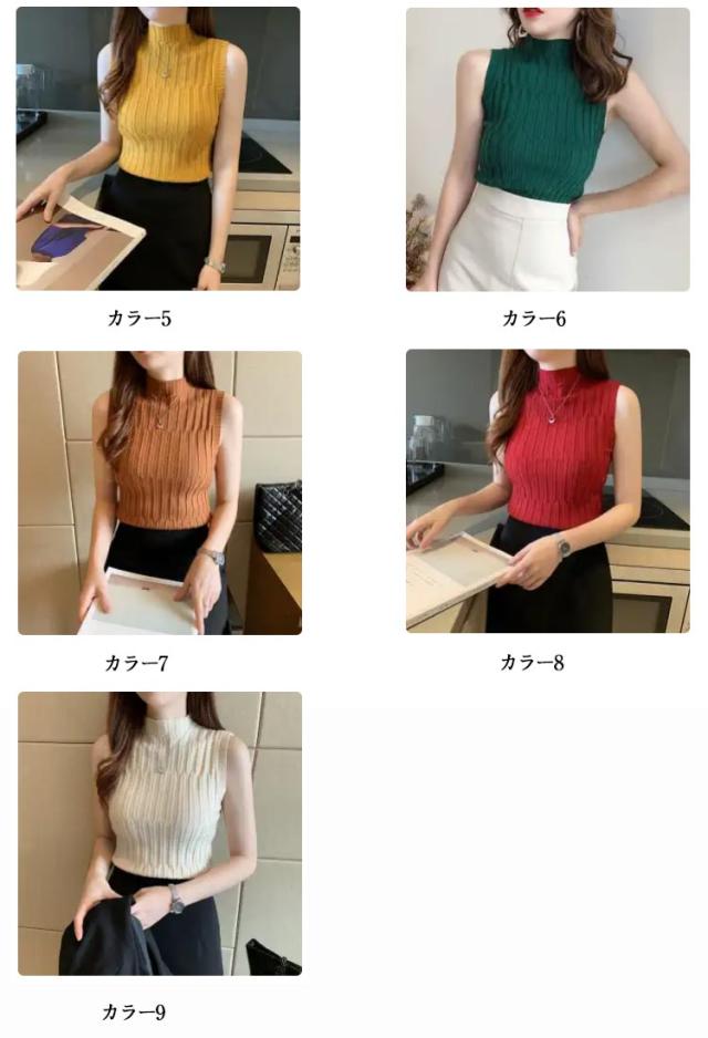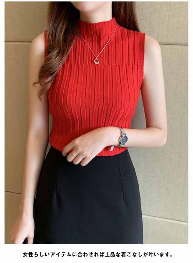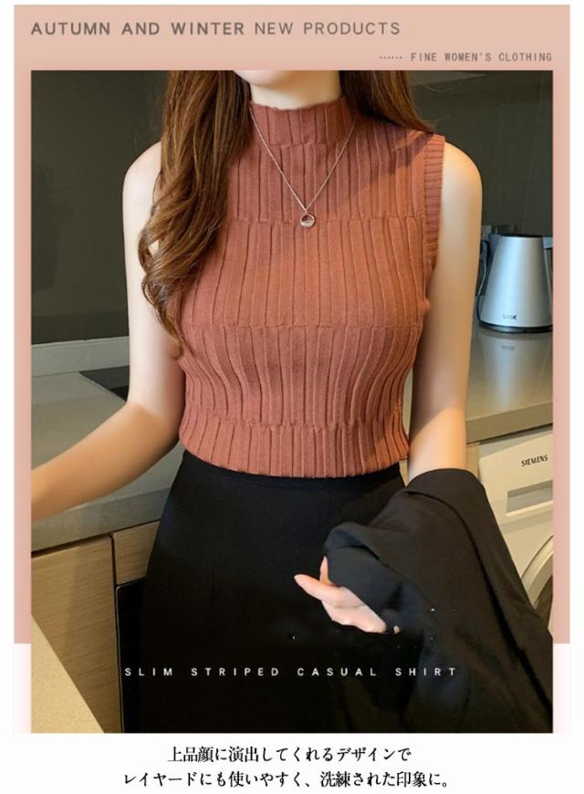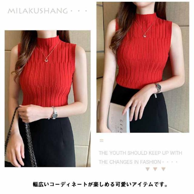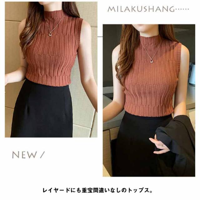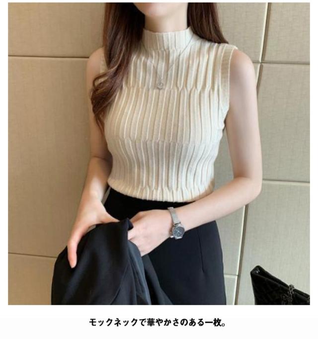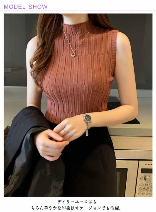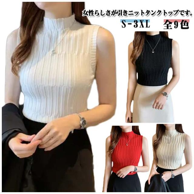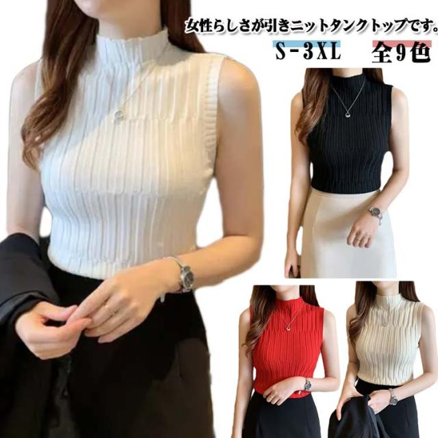 ノースリーブ ニット タンク レディースレト トップス モックネック 全9色 インナー S 重ね着風 レイヤード 見せインナー 見せタンクトップ ニットタンクトップ きれいめ 春夏 着やせ M L XL 2XL