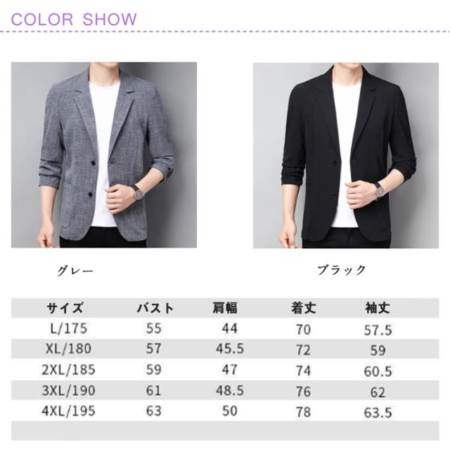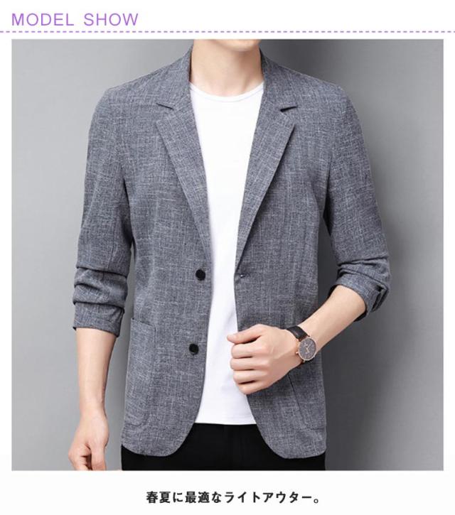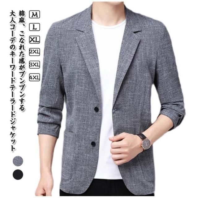 ジャケット メンズ サマーテーラード 春夏 ビジネス テーラードジャケット 長袖 リネン 綿麻 サマージャケット カジュアル ブラック 大人 紳士服 リネン グレー M L XL 2XL 3XL
