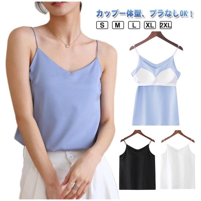キャミソール 下着 オフィス キャミトップ ノースリーブ カップ付き インナー Vネック トップス キャミソール キャミソールブラ 光沢 冷感 肌着 セクシー サテンタッチ 重ね着 ルームウェア 母の日 プレゼント S M L XL