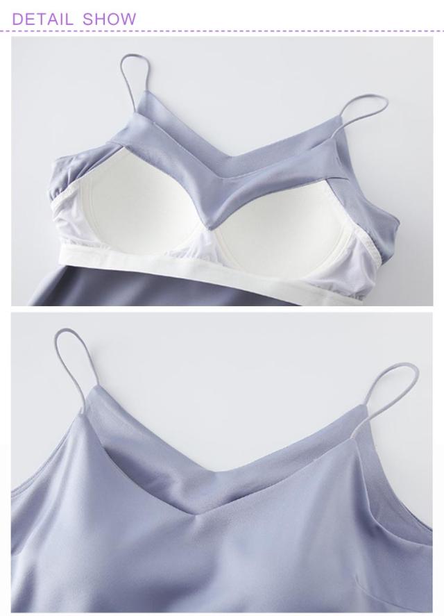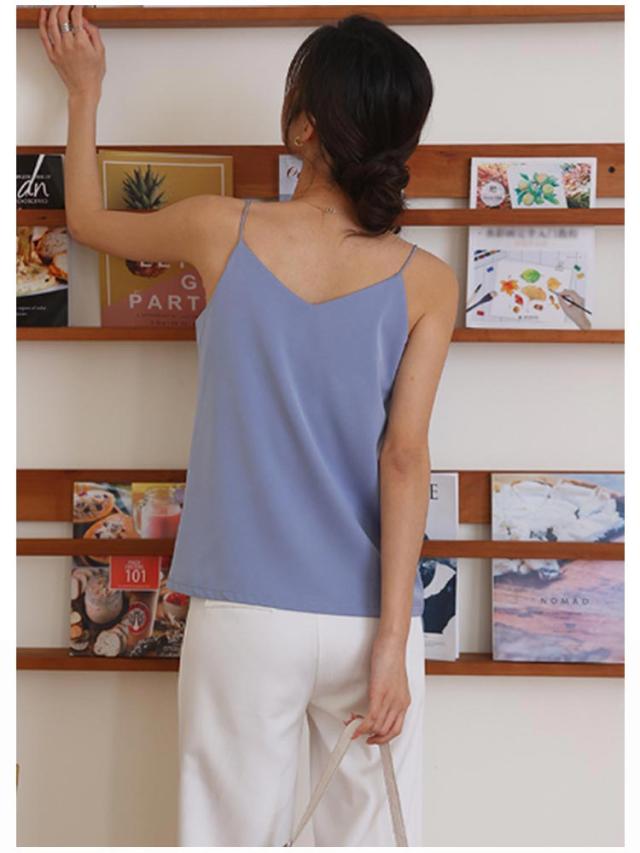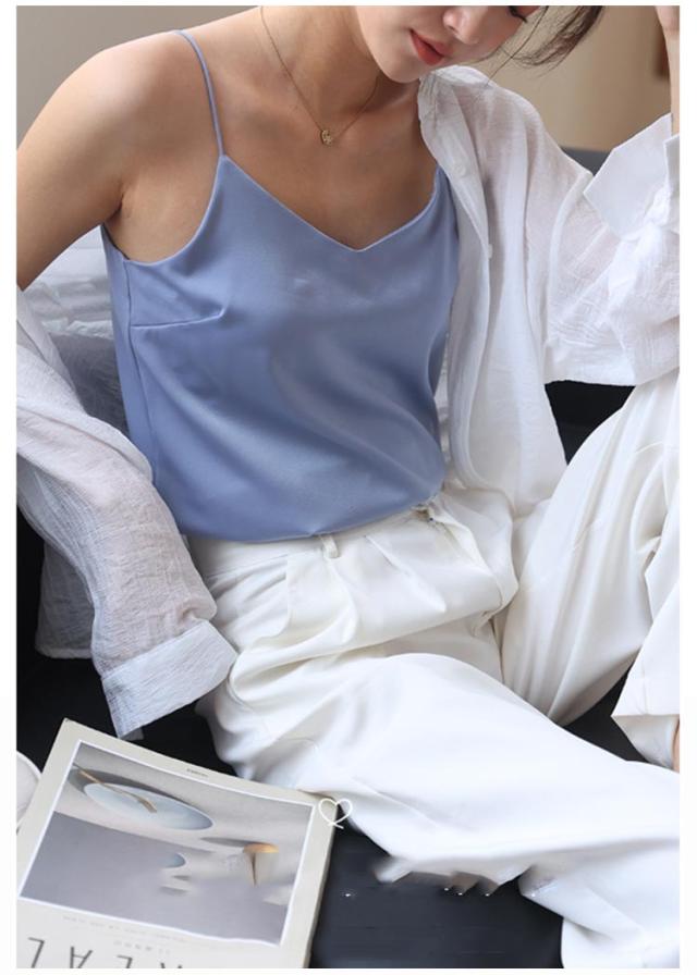 | カップー体型、ブラなしOK! 襟が広く開いたトップスのインナーにもオススメなVネックキャミソール。 快適で通気性のある生地 涼しいアイスシルク、軽くてフィット感があり柔らかく通気性があり、夏の蒸し暑さを解消し。 単品でもスタイリングがとてもセクシーで魅力的。 | |