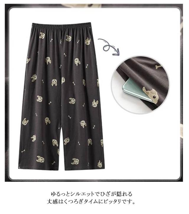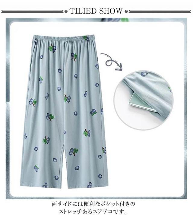レディース 総柄 クロップドパンツ 七分丈 レーヨン リラックスパンツ ウエストゴム ポケット付き ルームウェア ボトムス ステテコ 下 ゆるパンツ 涼しい 涼感 ステテコ