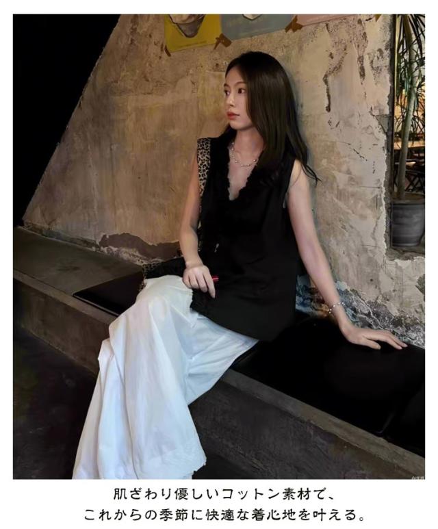 | 前後2WAYギャザーフリルノースリーブトップス。 たっぷりとギャザーフリルをあしらった華やかな1枚。 バックゴージャスなプルオーバーブラウス風に着こなしたり、深めのVネックでデコルテをきれいに魅せるベスト風に。 嬉しい前後2WAYだから気分に合わせてアレンジが出来るノースリーブブラウス、いつものコーデをグッと華やかに。 肌ざわり優しいコットン素材で、これからの季節に快適な着心地を叶える。 | |