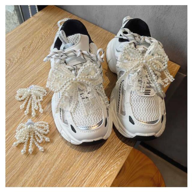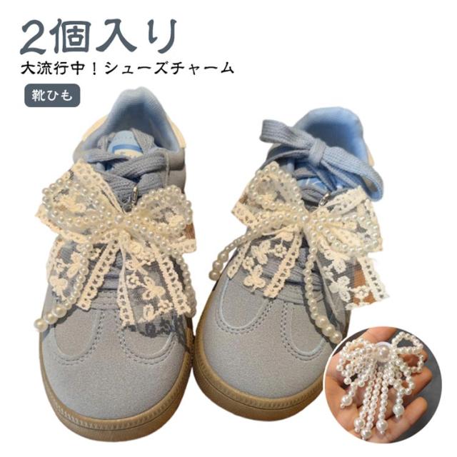靴ひも シューピアス 2個入り シューズアクセサリー シューピアス スニーカーアクセサリー 女性 パール シューパーツ 靴 スニーカーデコ レディース シューチャーム リボン バレエコア レース パール