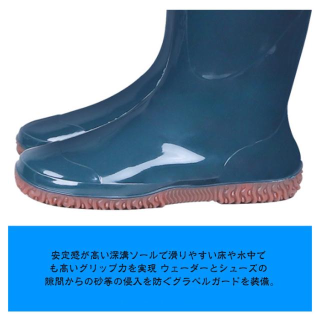 | 股下まである超ロングタイプ!ずり落ち防止のバンド付き♪ シンプルな男女兼用デザインのヒップウェーダーです。 ブーツとズボンは縫い合わせるのではなく、一体化でつくられており、水漏れはしません。 安定感が高い深溝ソールで滑りやすい床や水中でも高いグリップ力を実現 ウェーダーとシューズの隙間からの砂等の侵入を防ぐグラベルガードを装備。 太ももまで完全防水なので、太ももまでの水中作業・水跳ねの多い工場作業・漁業作業・農作業・水産にも最適です♪ 田植えなどの農作業はもちろん、渓流釣りや除草除雪などにも◎ | |