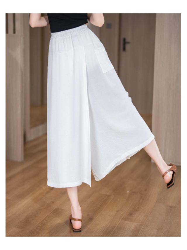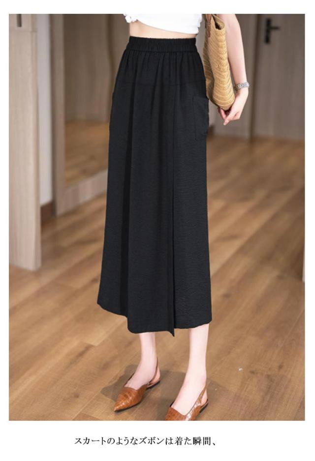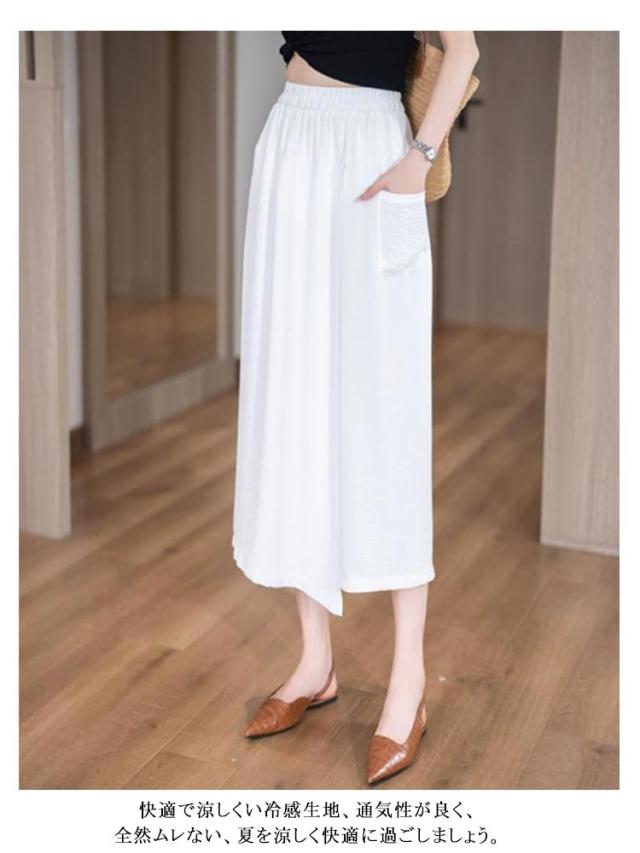 冷感 8分丈 アイスシルクパンツ ハイウエスト アイスシルクパンツ ガウチョパンツ キュロット レディース ワイドパンツ ひんやり 吸汗速乾 スカーチョ 大きいサイズ 無地 薄手 通気性 柔らかくて快適 軽くて涼しい カジュアル スカートパンツ お洒落